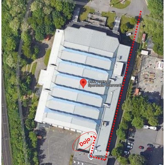 - Zugang zum Dojo über den Eingang von der Fechthalle